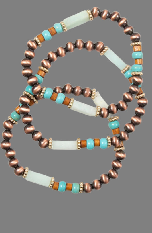 Wood Bead Layered Stretch Bracelet Set